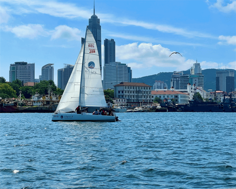 在体验式航海实习中,实践训练是必不可少的。郑和舰泊靠在烟台港码头,同学们分组参与了帆船和舢舨训练,这两项十分考验团队协作能力和对风浪的掌控能力,大家同心协力圆满完成了练习任务,极大锻炼了团队凝聚力。