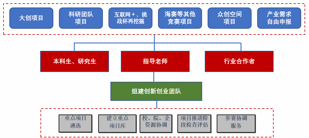 成立由院领导、辅导员、指导教师组成的互联网+竞赛指导、保障工作小组,通过走访科研团队、梳理有潜力的双创项目、年级班会等多种手段宣传动员了40余个团队参赛,在校内选拔、省赛、国赛各个阶段积极组织项目团队参加学校决赛项目集训营9轮累计120余天的集训,期间学工部吴闻川部长、学生创新创业教育中心贺华主任等领导、老师以“总师型”人才培养为导向,对我院的入围项目进行了系统、细致的指导,对参赛学生的家国情怀、创新能力、科研思维、综合素质进行全面提升。