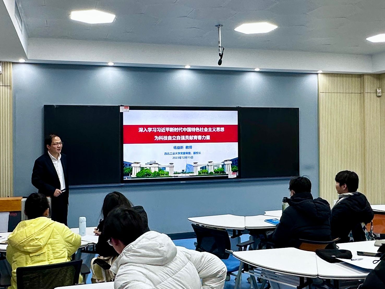 党委常委、副校长杨益新教授为学院师生讲授主题为《深入学习习近平新时代中国特色社会主义思想,为科技自立自强贡献青春力量》的思政课,台湾三级片