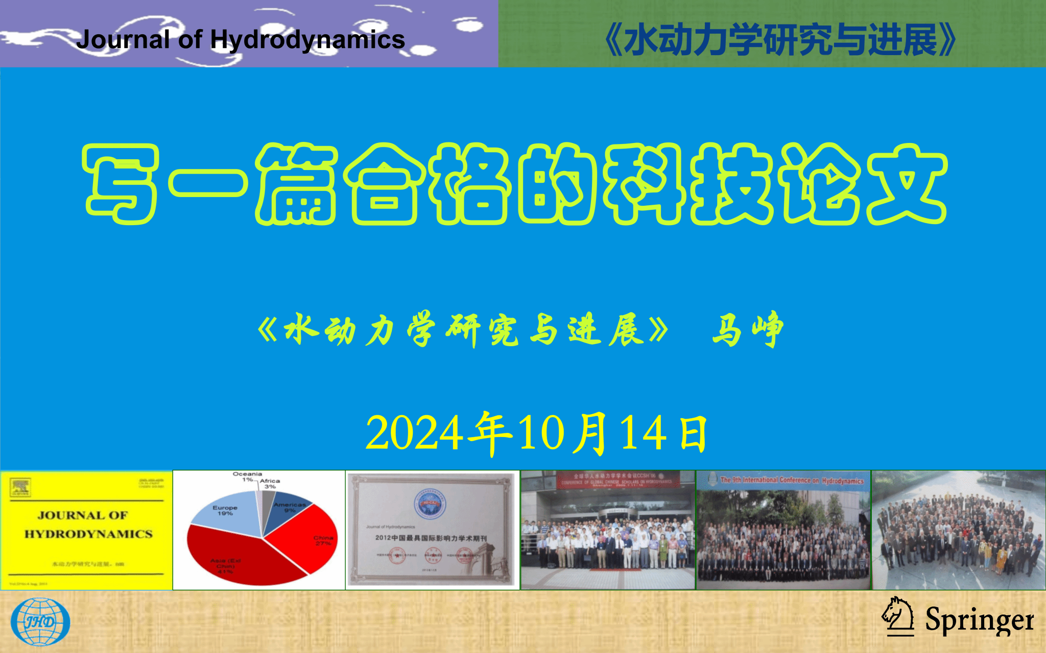 马峥研究员首先谈到,科技论文的核心是用科学的手段揭示科学问题和现象的本质及其规律,必须要保证科学性、创新性、学术性、应用性、规范性。在科技论文的写作要求方面,马研究员认为,选题要有前沿性、分析要有逻辑性、意义要有重要性、结论要有明确性,并对论文中标题、摘要、正文、参考文献等各部分的具体要求做了说明。此外,马研究员针对学术论文句式、用词、符号、数字等内容指出了科研人员撰写论文时的一些常见误区及修改方法,并从编委会组成、学术活动等方向对期刊《水动力学研究与进展》作了全面介绍。